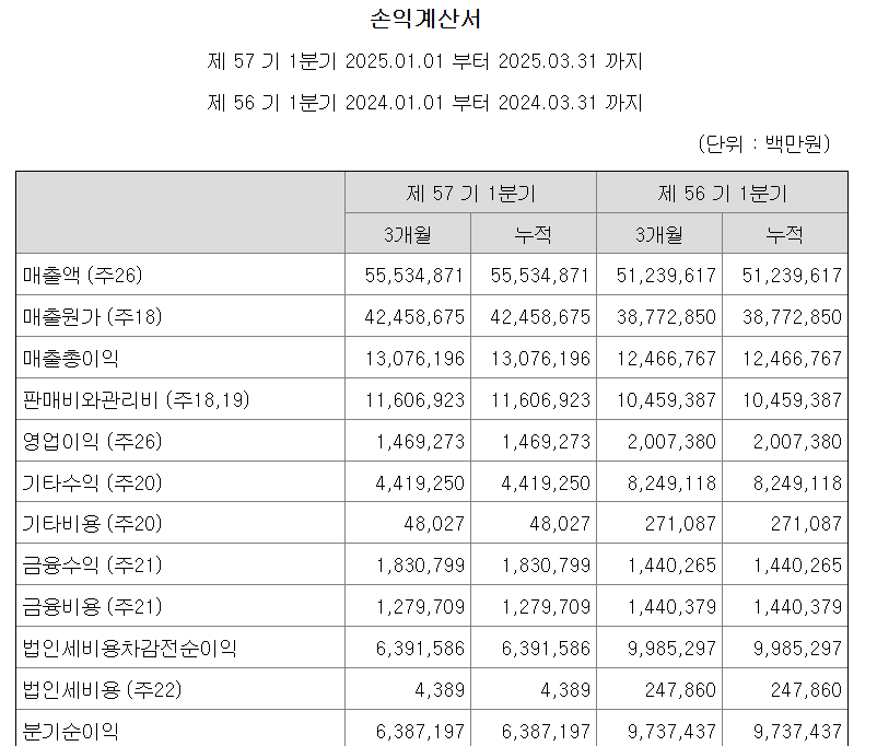 기업이 돈을 벌고 있는지, 적자를 보고 있는지를 확인하는 표입니다.