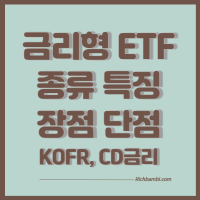 금리형 ETF는 주식처럼 거래가 가능하면서 이자가 매일 수익금의 형태로 가격에 반영되는 구조로, 목돈을 거치하기 좋은 ETF로 많은 사람들이 관심을 가지고 있습니다. 이번 포스팅에서는 금리형 ETF의 특징과 장단점을 살펴보고, 어떠한 종류의 금리형 ETF가 있는지 알아보도록 하겠습니다.