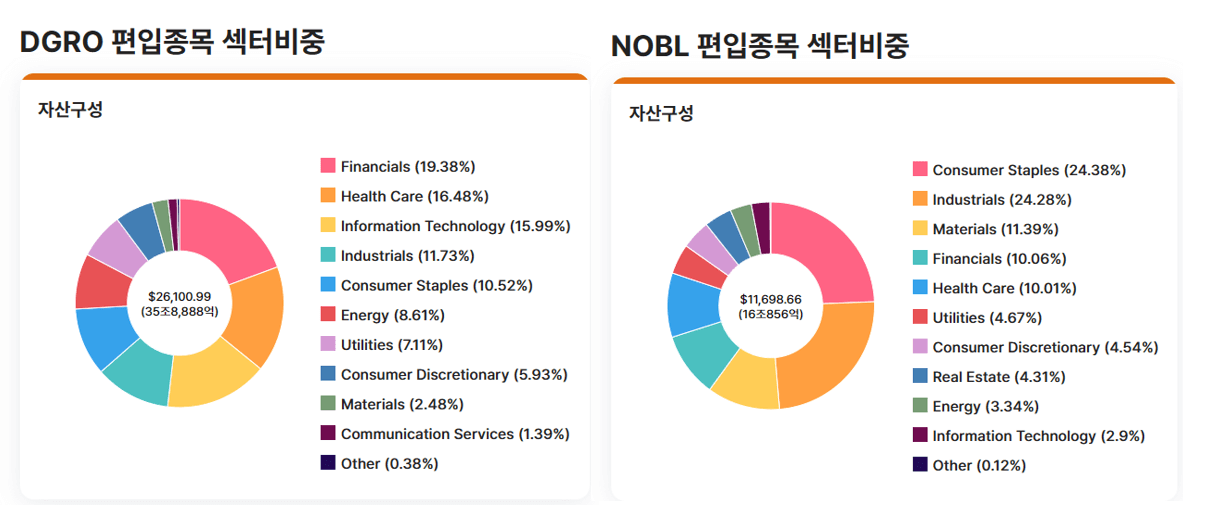 배당성장 ETF - VIG SCHD DGRO NOBL