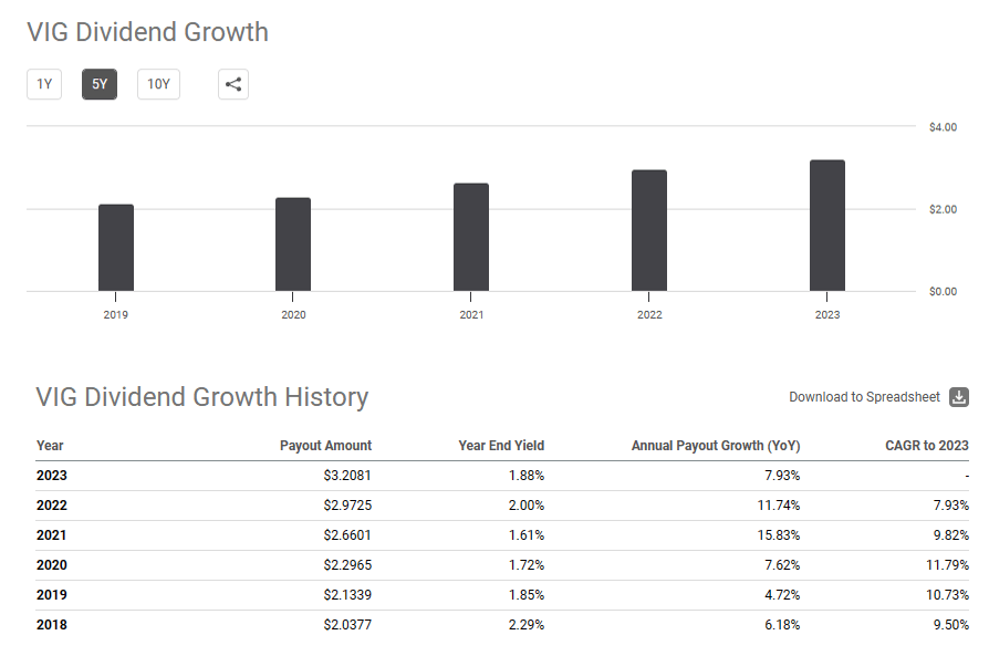 배당성장 ETF - VIG SCHD DGRO NOBL