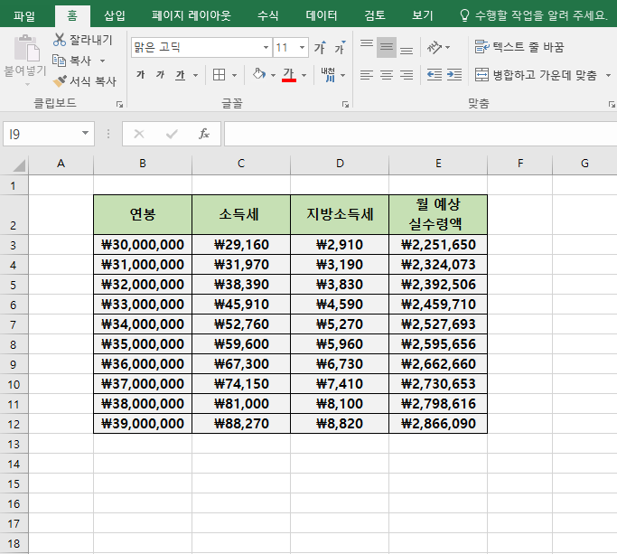 위와 같은 데이터가 있을 때 붙여 넣기 행/열 바꿈 기능을 이용해서 행열전환을 해보겠습니다. 가장 간단한 방법입니다.