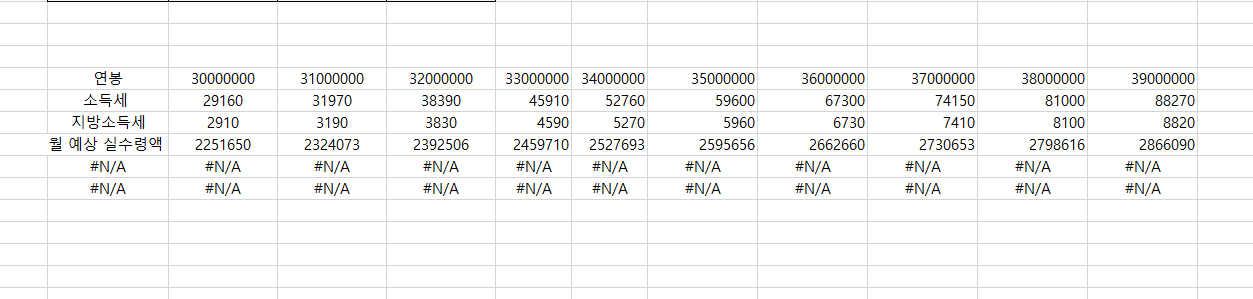 또한, 원본 데이터의 범위가 정말 일치하게 범위를 지정해 주는 것이 가장 이상적인데요, 그 이유는 더 많은 범위를 지정하게 되면 아래와 같이 #N/A로 표시가 되기 때문입니다.