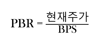BPS는 '한 주당 순자산이 얼마인가?'를 나타내는 지표입니다. 이 BPS를 구하는 이유는 PBR을 구하기 위해서입니다. PBR을 구하는 공식을 보면 현재주가를 BPS로 나눈 값인데요, PBR은 현재 기업의 주가가 BPS(한 주당 순자산), 즉 그 기업이 가진 순 자산에 비해서 얼마나 높은 지를 나타내는 지표라고 할 수 있습니다.