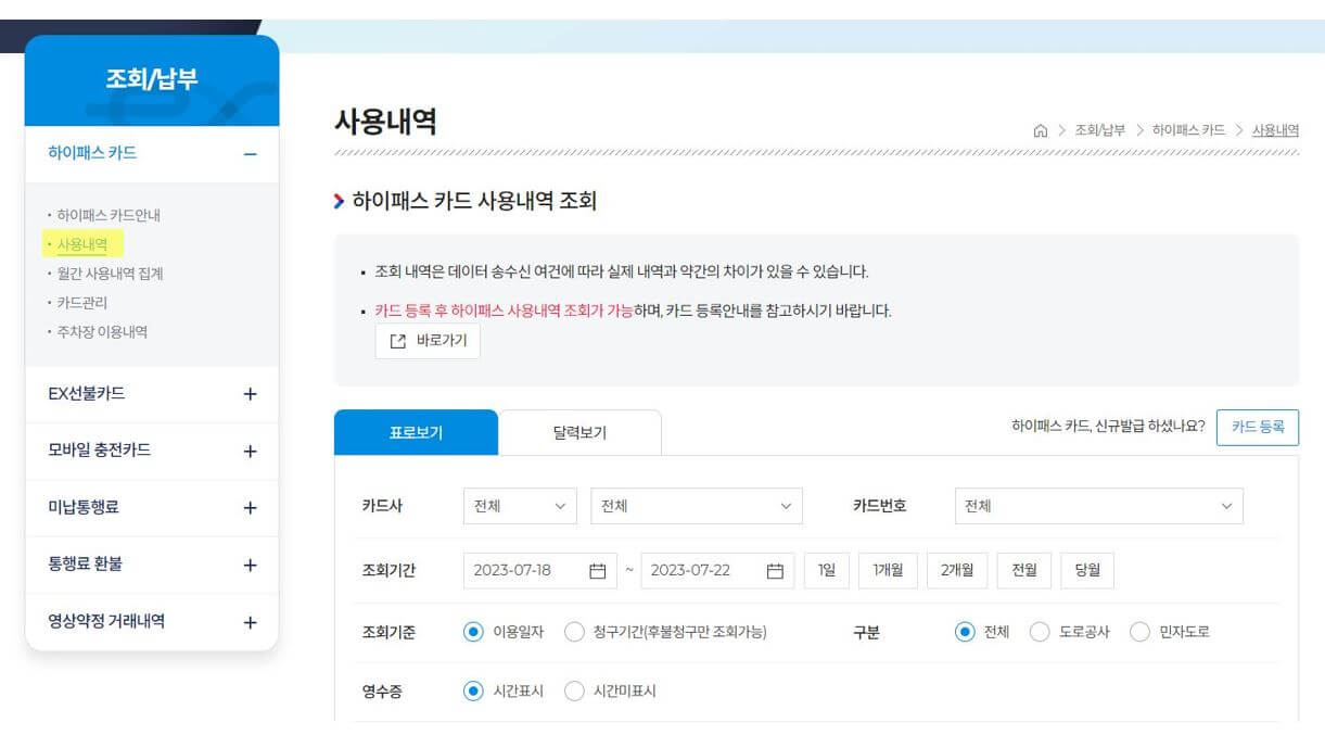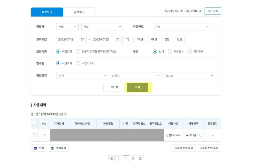 하이패스 영수증 인터넷 출력방법