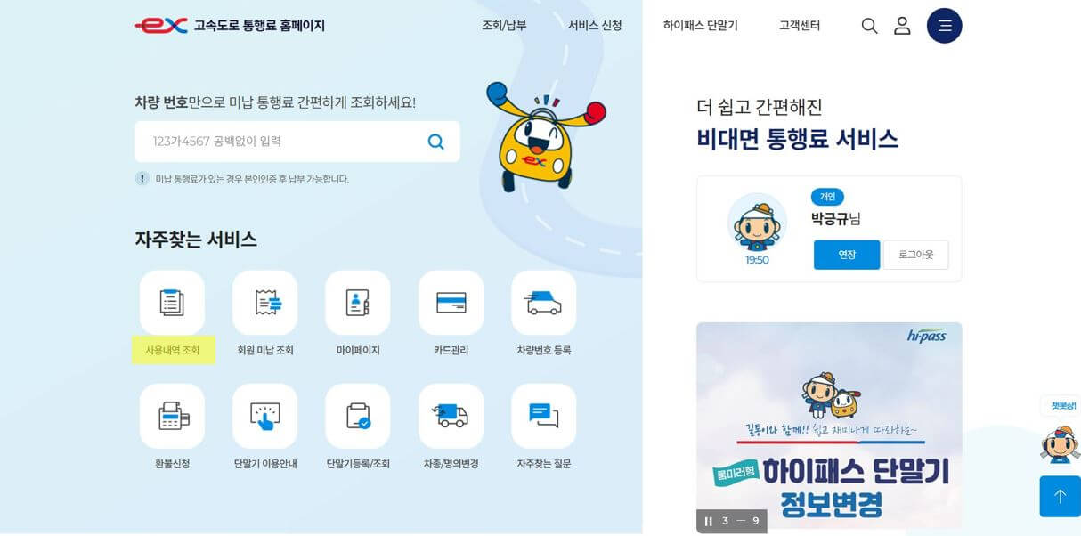 고속도로 통행료 홈페이지
