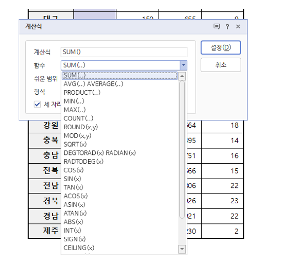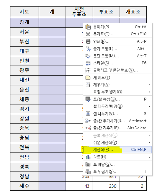 1. 계산식을 적용하고자 하는 셀 우클릭 - [계산식] 클릭