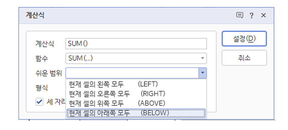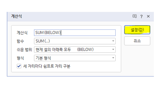 3. 쉬운 범위 : 해당되는 항목 선택 → 계산식 자동으로 완성됨
