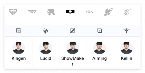 디플러스 기아입니다. 쇼메이커선수가 굳건하게 미드자리를 지키고 있는데요, 그 외에 켈린선수도 재계약하였으며, 킹겐, 에이밍선수를 영입하고, 2군의 루시드선수를 콜업하였습니다. 에이밍은 지난 시즌 좋은 퍼포먼스를 보였던 원딜인 만큼 이번시즌 디플러스 기아 역시 기대되는 팀입니다.