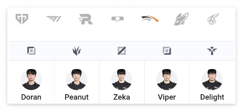 DRX입니다. 생소한 이름들이 많이 보이는데요, 베테랑 선수인 Rascal과 Teddy를 필두로 Sponge, SeTab, Pleata선수를 콜업하며 새로운 팀을 구성하였습니다. 새로운 선수들 위주로 구성된 팀인 만큼, 이번 시즌 어떤 경기력을 보여줄지 기대됩니다.