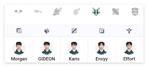 OK브리온 입니다. Morgan, Karis, Effort선수가 재계약하여 팀에 남게 되었으며, gideon, Envyy선수를 영입하였습니다.
