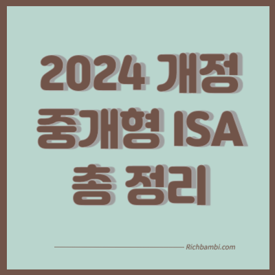 이번 포스팅에서는 '만능계좌'라고 불리는 중개형 ISA계좌에 대해서 알아보겠습니다. 세제혜택을 비롯한 각종 혜택이 있는 계좌로 주식투자자 분들에게는 아주 활용도가 높은 계좌인데요, 2024년에 ISA계좌가 새롭게 바뀌면서 혜택이 훨씬 더 좋아졌습니다. 중개형 ISA는 어떤 계좌인지 어떤 혜택을 갖고 있는지 2024년에 어떻게 개정될 예정인지에 대해서 자세하게 살펴보도록 하겠습니다.