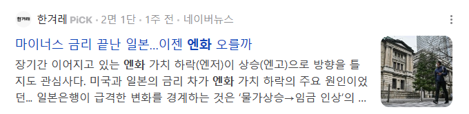 이에 더불어 최근 엔화투자 열풍이 불고 있는데요, 역대급 엔저현상을 보이는 상황에서 지난 19일 일본의 마이너스 금리 해제를 발표하면서 엔화의 가치가 올라갈 것이라는 전망으로 엔화투자(엔테크)가 굉장히 핫한 키워드 중 하나입니다.
