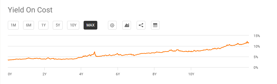 위의 그래프는 SCHD의 Yield On Cost를 나타낸 그래프입니다.
